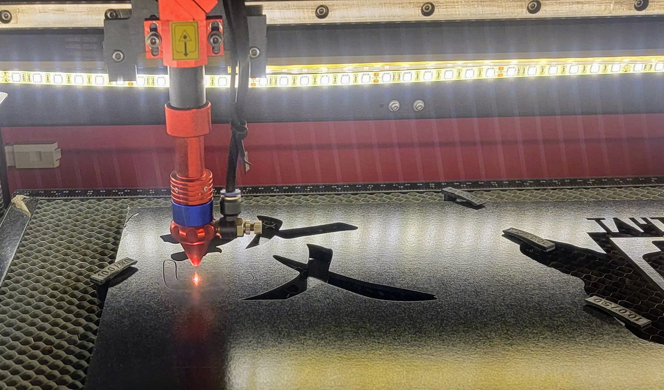 Prevent flash back from your honeycomb and hold down the material at the same time! Designed and manufactured in house, these hold downs are 3D printed in PETG, a non-toxic plastic polymer that offers strength and flexibility.